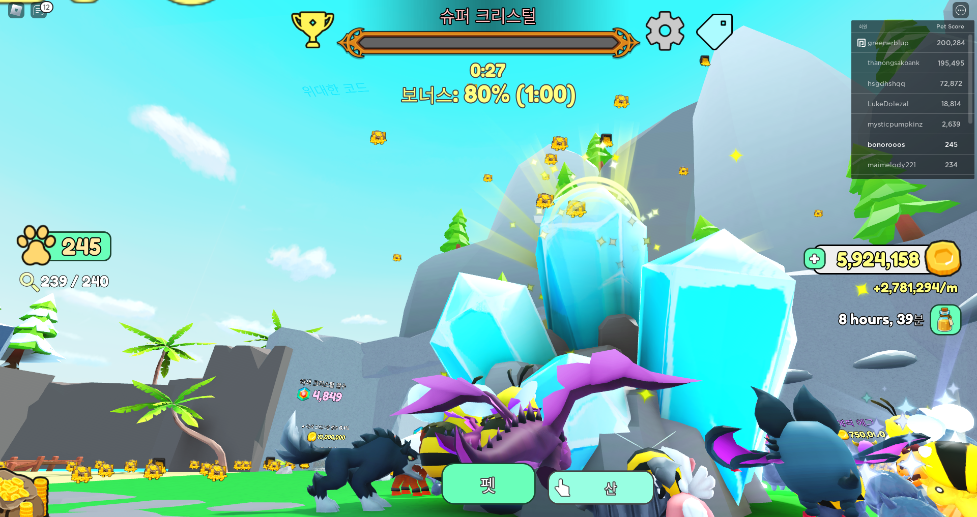 총 240마리의 일반펫과 극악의 확율로 뽑히는 빛나는 펫! 그리고 아직 뽑아보지 못한 메탈릭 펫까지~!