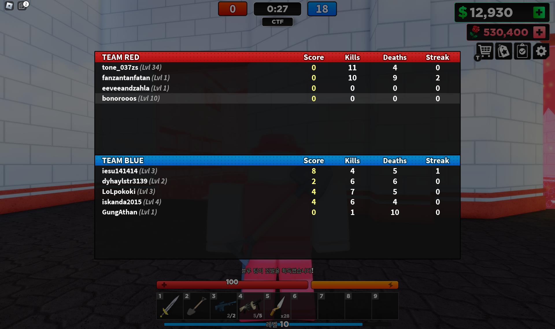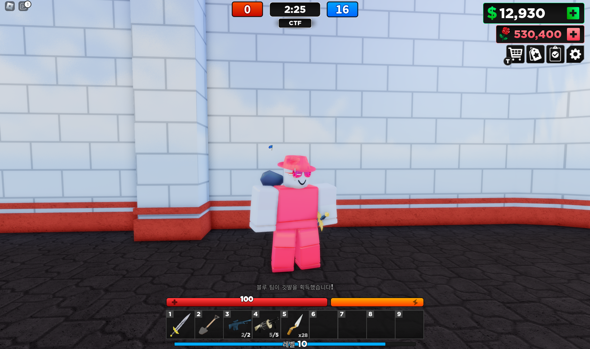 게임의 방식은 서든어택과 비슷해요. 깃발을 뺏는것도 중요하지만 초반에는 상대팀을 많이 죽여 장미와 돈을 얻는 것이 중요하답니다. 초반에는 깃발을 가지러 가려고 너무 노력하지 마세요~!ㅋ