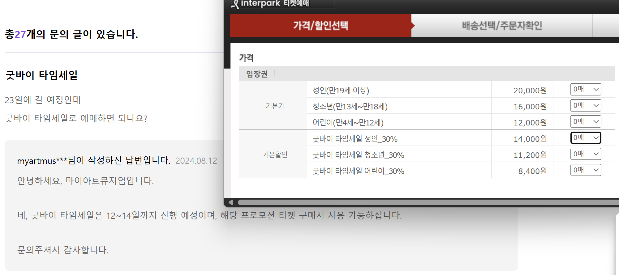 현재 인터파크에서 진행하는 굿바이 타임세일 !! 30% 할인 티켓 구매 링크!