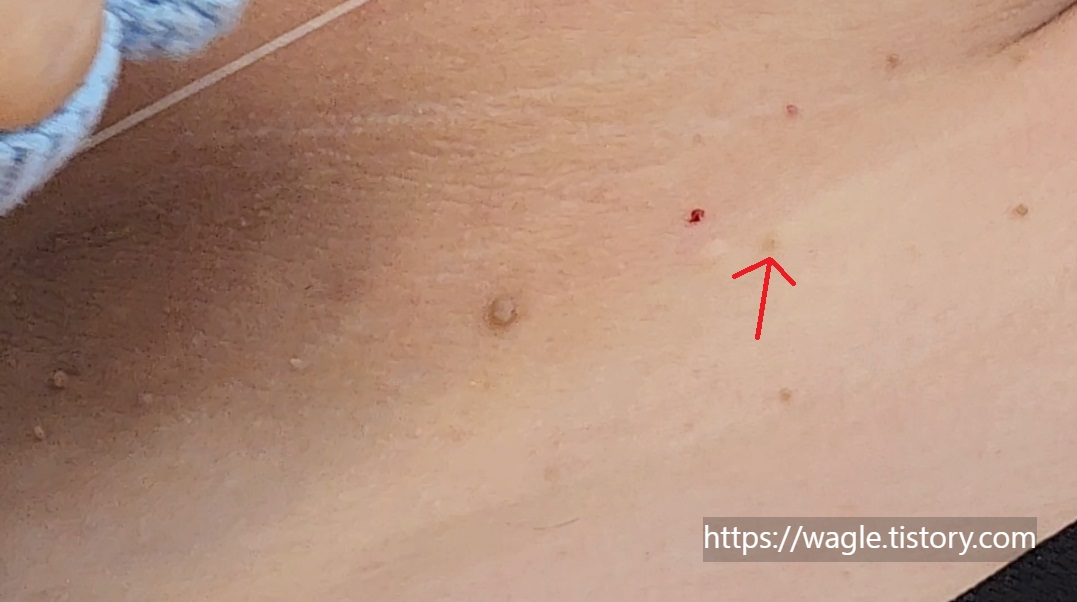 보이시나요? 저는 점인 줄 알았는데 이게 쥐젖이었어요?! 대략 들깨 크기만했어요.