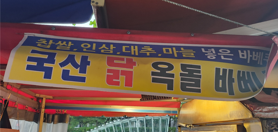 <하계역 5번 출구 전기구이 통닭>입니다. ㅎㅎ 노점이라 가게 이름을 제가 지어 봤어요